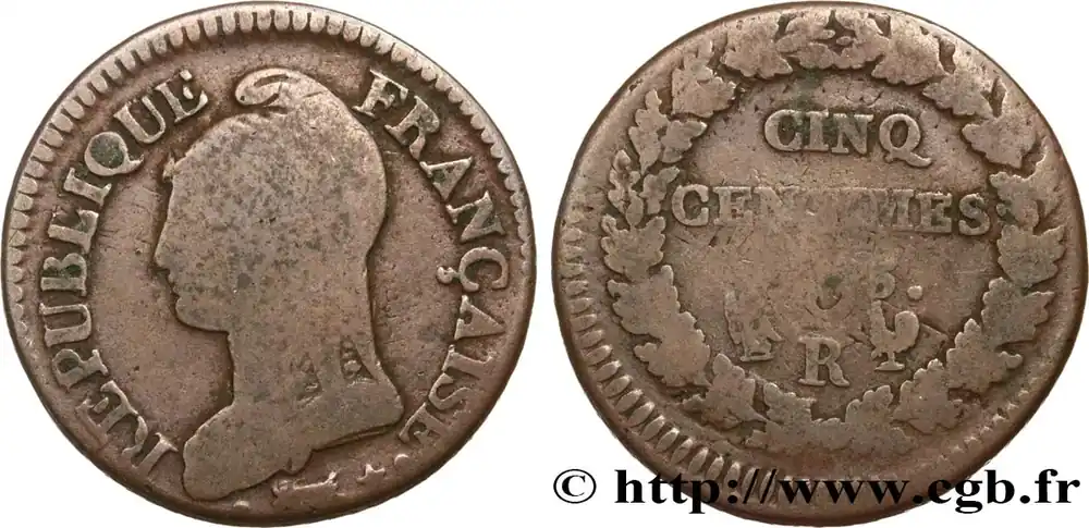 Cinq centimes Dupré, grand module, « refrappage » du décime 1797 Orléans F.114/10 fmd_616860 Modernes Artisanat