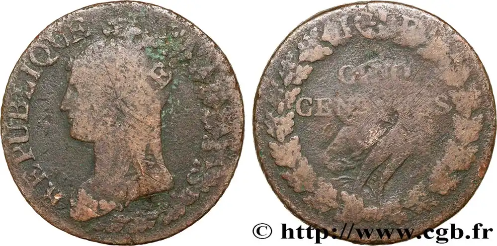 Cinq centimes Dupré, grand module, « refrappage » du décime 1797 Lyon F.114/7 fmd_493831 Modernes Seulement Aujourd’hui