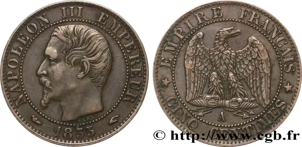 Cinq centimes Napoléon III, tête nue 1855 Paris F.116/17 fmd_589471 Modernes Livraison Mondiale