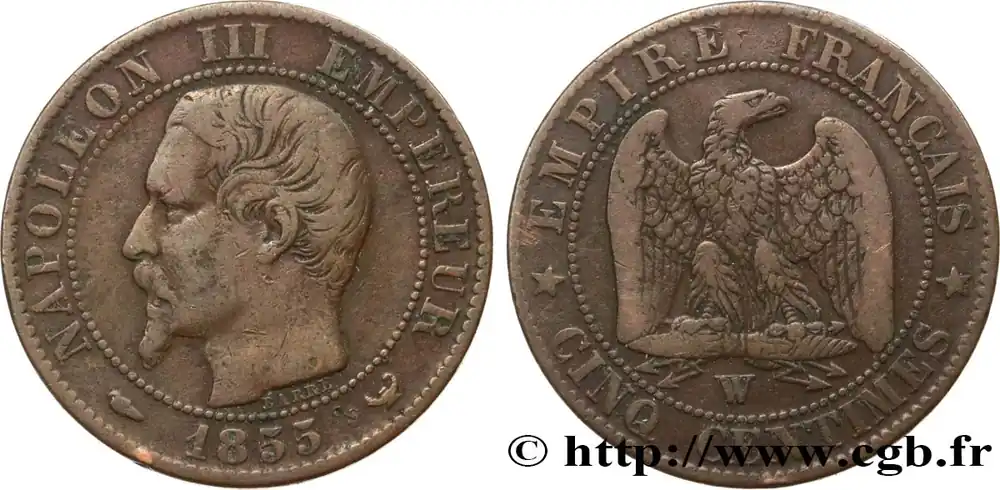 Cinq centimes Napoléon III, tête nue 1855 Lille F.116/28 fmd_587050 Modernes Solde