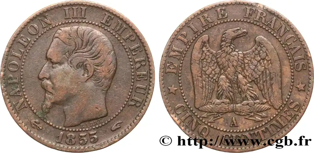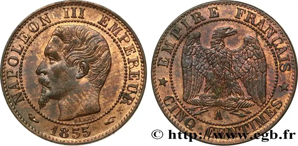 Cinq centimes Napoléon III, tête nue 1855 Paris F.116/17 fmd_631413 Modernes Gros Lot