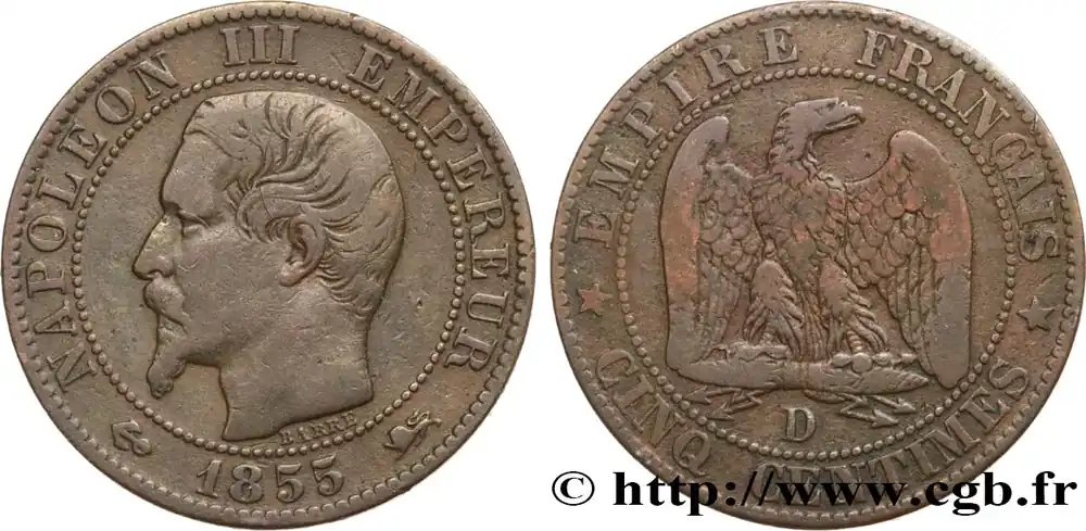 Cinq centimes Napoléon III, tête nue 1855 Lyon F.116/22 fmd_591672 Modernes Livraison Express