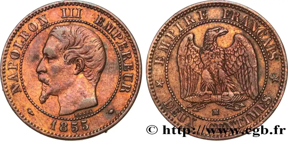 Deux centimes Napoléon III, tête nue 1855 Lyon F.107/27 fmd_583530 Modernes Commande En Gros