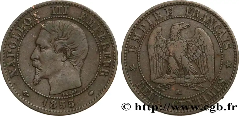 Dernier Modèle Deux centimes Napoléon III, tête nue 1855 Marseille F.107/36 fmd_583547 Modernes