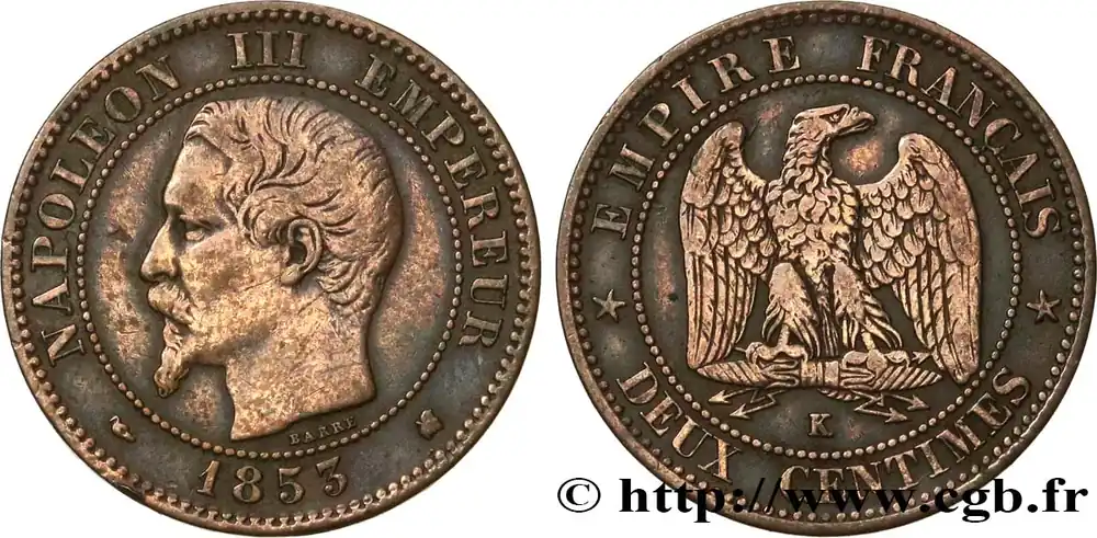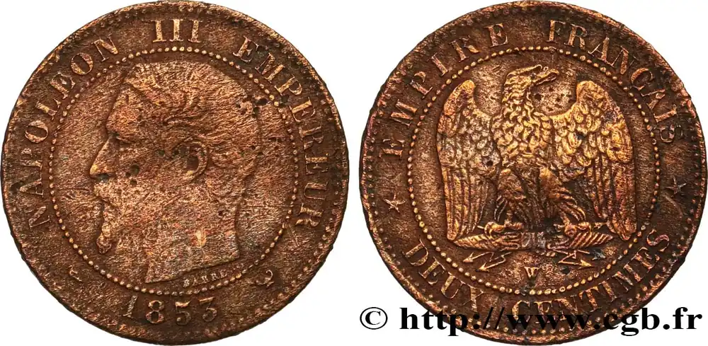 Deux centimes Napoléon III, tête nue 1853 Rouen F.107/2 fmd_631716 Modernes Commande En Gros
