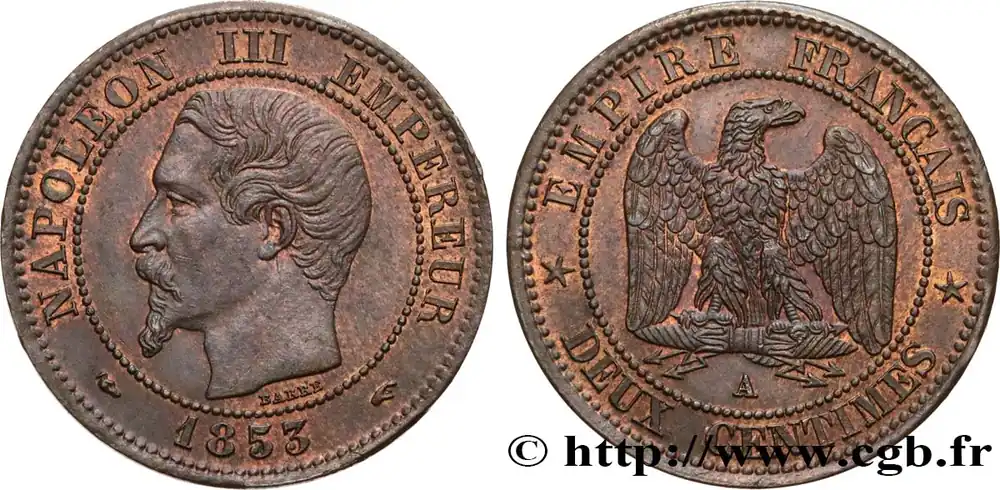 Deux centimes Napoléon III, tête nue 1853 Bordeaux F.107/6 fmd_617513 Modernes Must-Have