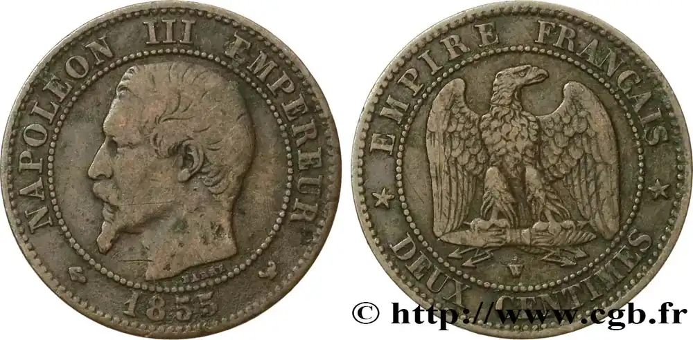 Deux centimes Napoléon III, tête nue 1855 Lille F.107/37 fmd_585156 Modernes Prix Cassé