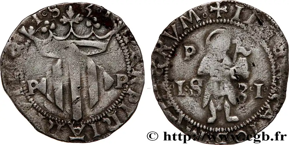 ROUSSILLON – VILLE DE PERPIGNAN – CHARLES Ier D’ESPAGNE Double sol de billon 1531 Perpignan fwo_713287 Monde Réduction
