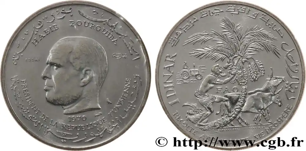 TUNISIE Essai de 1 Dinar Habib Bourguiba type FAO 1970 Paris fwo_818344 Monde Produit De Marque