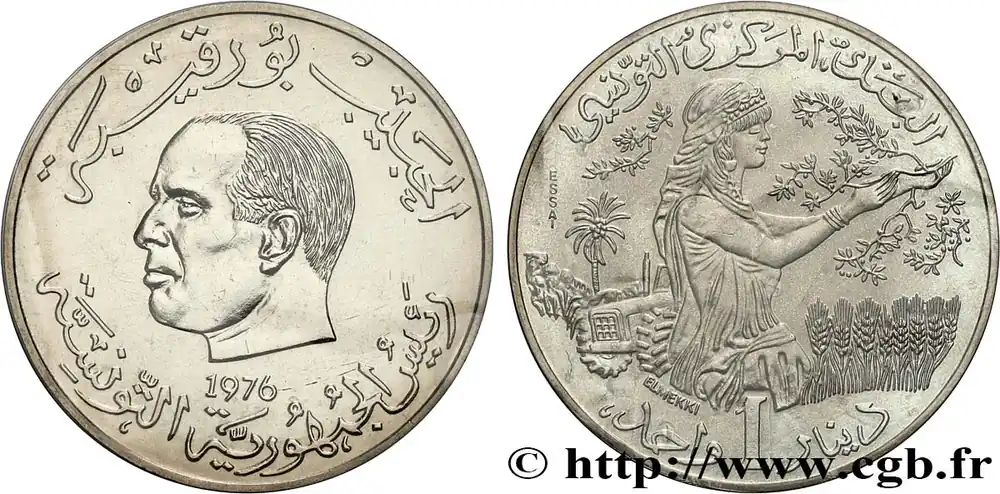 TUNISIE Essai de 1 Dinar Habib Bourguiba type FAO 1976 Paris fwo_775836 Monde Original