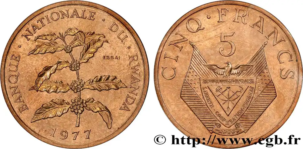 RWANDA Essai de 5 Francs 1977 Paris fwo_775902 Monde Livraison Gratuite