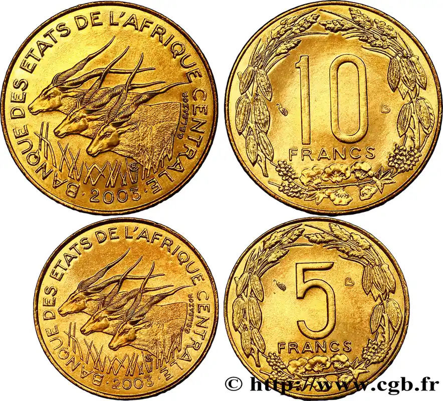 ÉTATS DE L’AFRIQUE CENTRALE Lot 5 et 10 Francs antilopes 2003 Paris fwo_885697 Monde Original