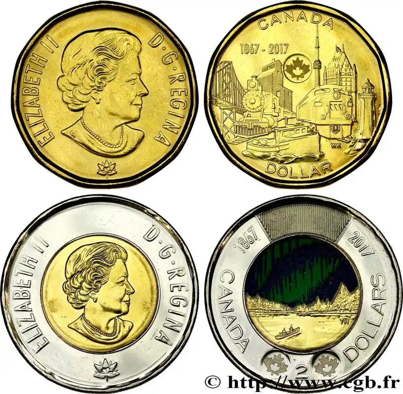 CANADA Lot de 2 monnaies de 1 & 2 dollars 150 ans du Canada 2017 fwo_687259 Monde Offre Du Jour