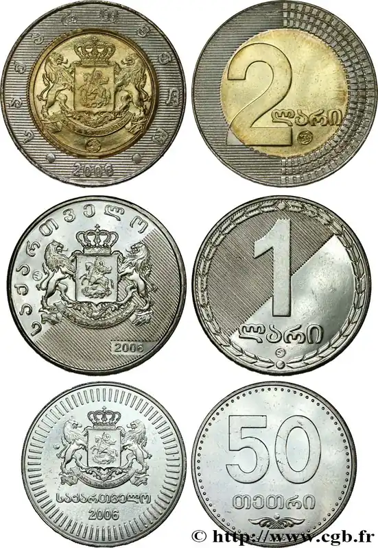GEORGIE Lot de 3 monnaies 50 Thetri, 1 & 2 Lari 2006 fwo_849607 Monde Usine Directe