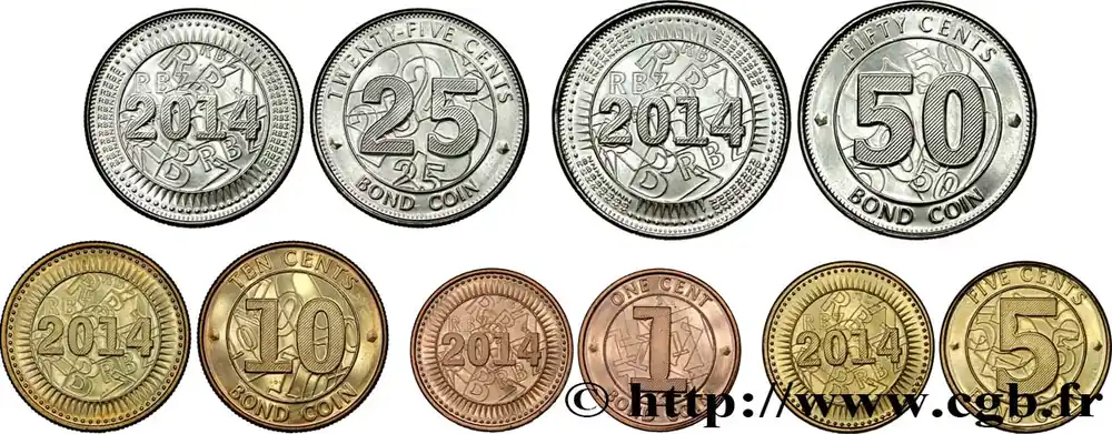 ZIMBABWE Lot de 5 monnaies 1, 5, 10, 25 et 50 Cents 2014 fwo_849617 Monde Offre Exclusive