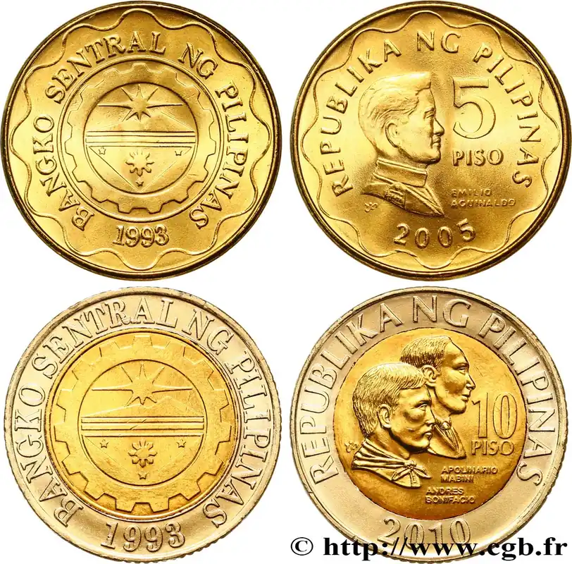 PHILIPPINES Lot de deux monnaies 5 et 10 Piso 2005-2010 fwo_849720 Monde Offre Limitée
