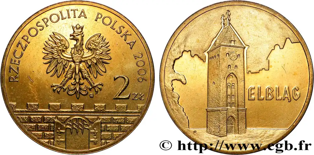 Meilleur Prix POLOGNE 2 Zlote aigle / ville hanséatique de Elblag, tour du marché 2006 Varsovie fwo_821289 Monde
