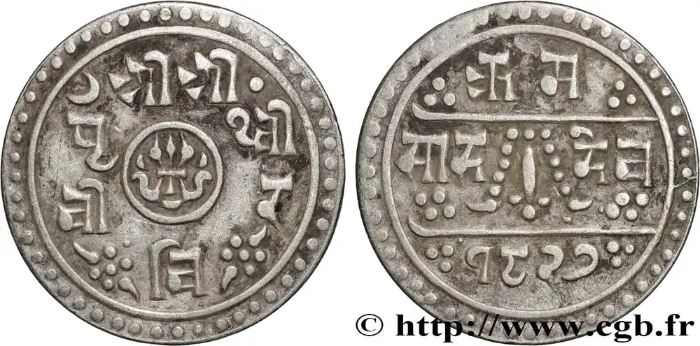 NÉPAL 1/2 Mohar au nom du Shah Prithvi Bir Bikram VS1833 1911 fwo_862619 Monde Nouvelle Collection