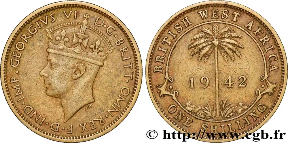 Offre Exclusive AFRIQUE OCCIDENTALE BRITANNIQUE 1 Shilling Georges VI / palmier 1942 fwo_872321 Monde