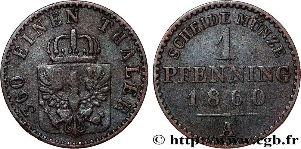 ALLEMAGNE – PRUSSE 1 Pfenning Royaume de Prusse 1860 Berlin fwo_818708 Monde Top Vente