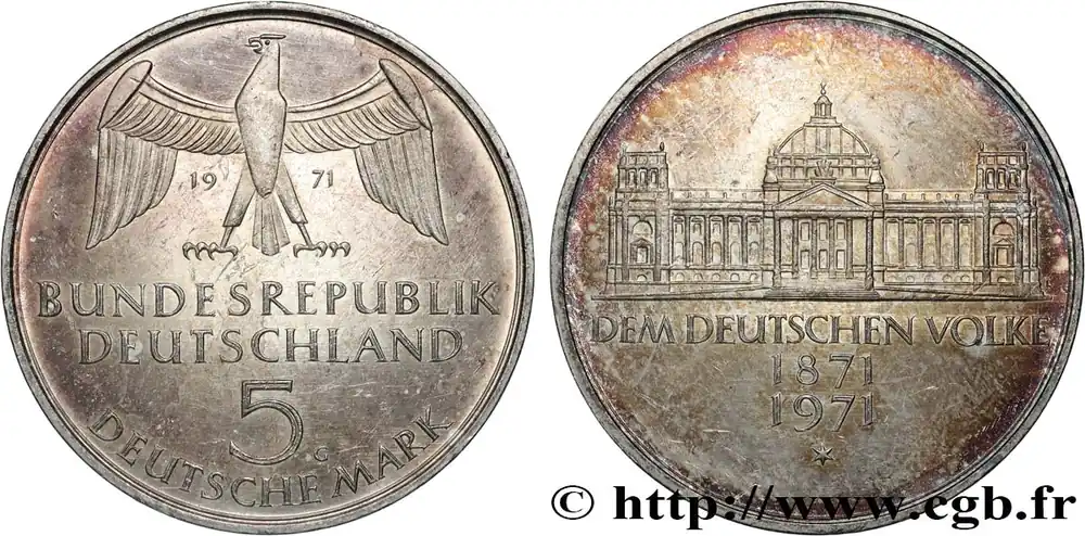 Fait Main ALLEMAGNE 5 Mark Proof Centenaire du parlement allemand 1971 Karlsruhe fwo_830965 Monde