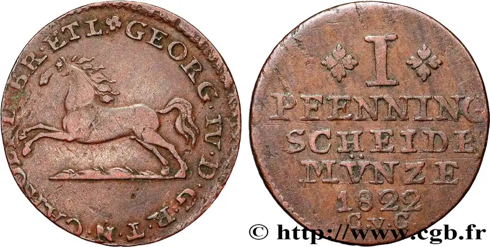 ALLEMAGNE – BRUNSWICK 1 Pfenning Georges de Hanovre et Charles II de Brunswick 1822 fwo_833275 Monde Commander Vite