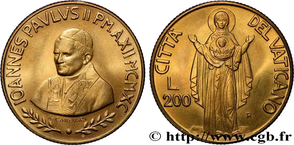 Must-Have VATICAN ET ÉTATS PONTIFICAUX 200 Lire Jean Paul II an XII / Madone 1990 Rome fwo_967904 Monde