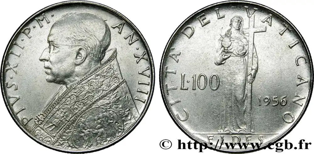 Offre Du Jour VATICAN ET ÉTATS PONTIFICAUX 100 Lire Pie XII an XVIII / Fides tenant la croix 1956 Rome fwo_821494 Monde