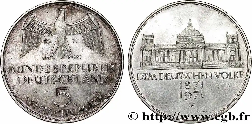 Achat Immédiat ALLEMAGNE 5 Mark Centenaire du parlement allemand 1971 Karlsruhe fwo_784244 Monde