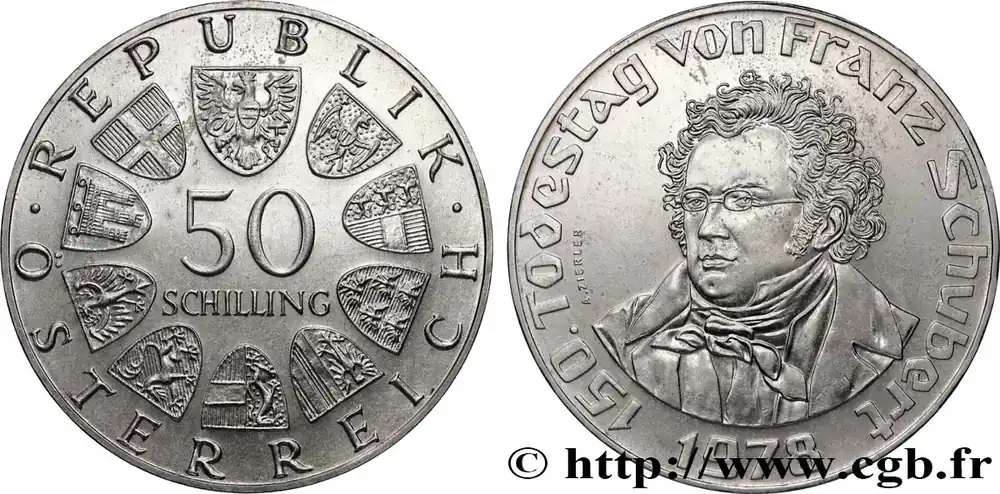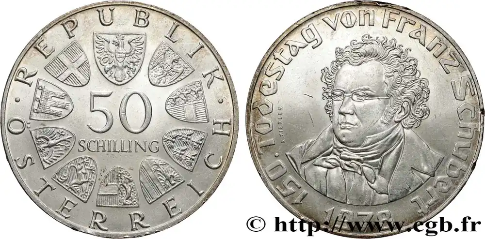 AUTRICHE 50 Schilling 150e anniversaire de la mort du compositeur Franz Schubert 1978 fwo_725898 Monde Bon Plan