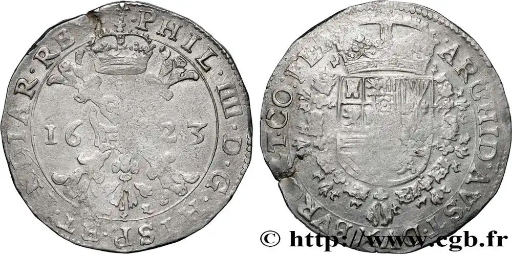 PAYS-BAS ESPAGNOLS – COMTÉ DE FLANDRE – PHILIPPE IV Patagon 1623 Bruges fwo_860170 Monde Authentique