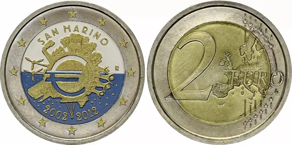 Acheter Direct Saint-Marin 2 Euros – 10 ans de l’Euro – Colorisée – 2012