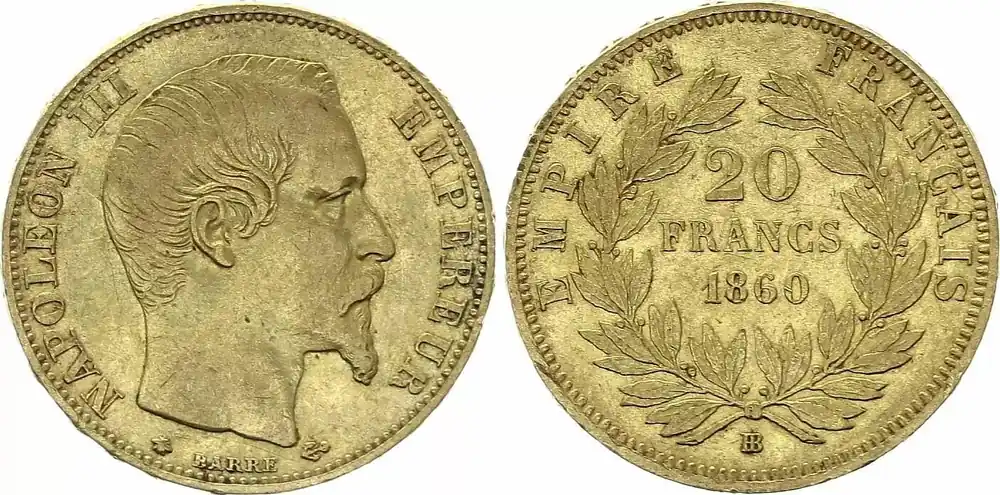Acheter Direct France 20 Francs Napoléon III Tête nue – 1860 BB Strasbourg – Or