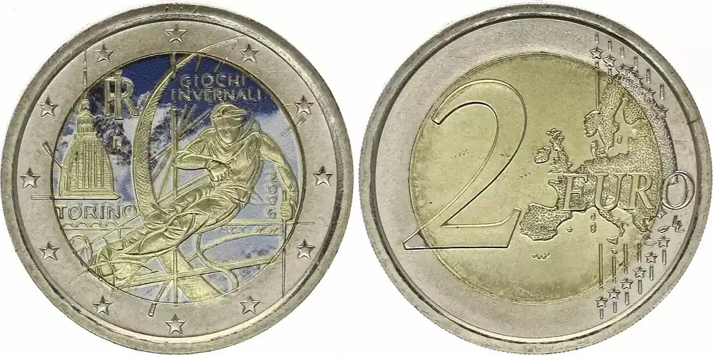 2 Euros – Jeux d’Hiver de Turin – Colorisée – 2006 Prix Choc