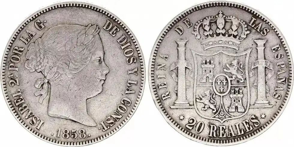 Acheter Direct Espagne 20 Reales Isabelle II – Armoiries 1858 Madrid