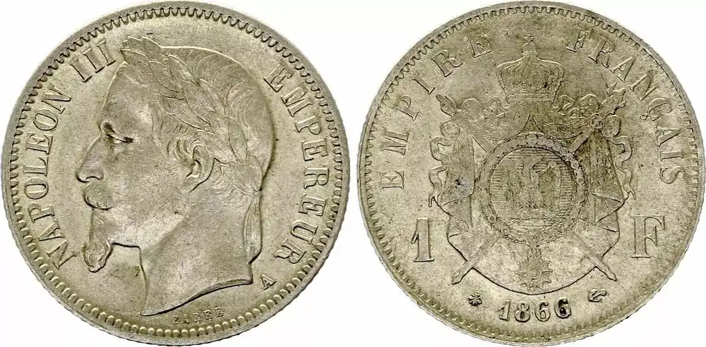 France 1 Franc Napoléon III – 1866 A Paris – Argent Dernier Modèle