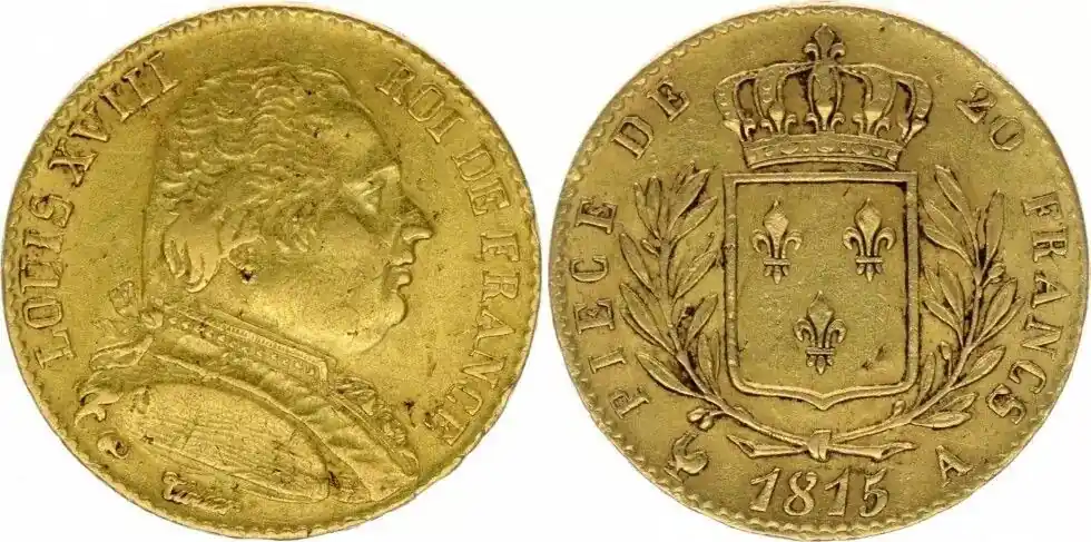 France 20 Francs Louis XVIII – 1815 A Paris – TTB – Or Solde