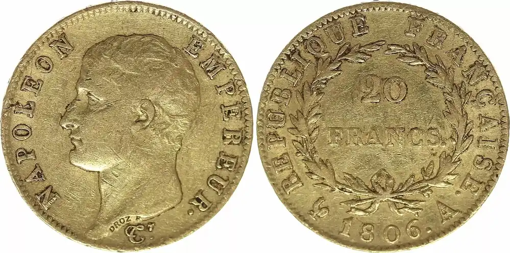 France 20 Francs Napoléon I Empereur – 1806 A Paris Réduction