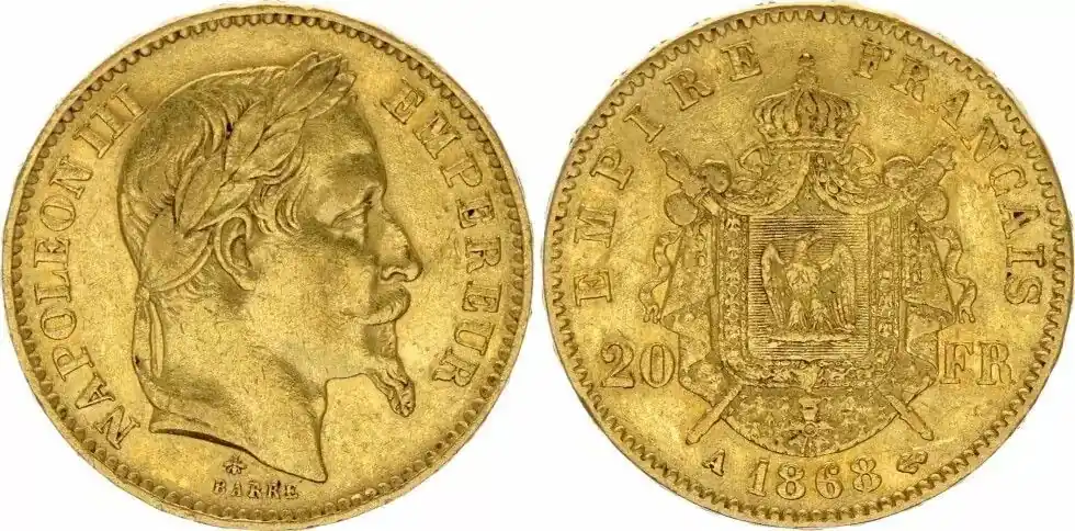 France 20 Francs Napoléon III – Tête Laurée – 1868 A Paris Or Quantité Limitée