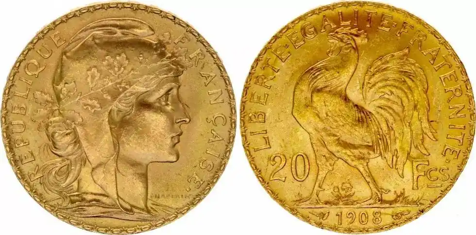 France 20 Francs Marianne – Coq 1908 Original