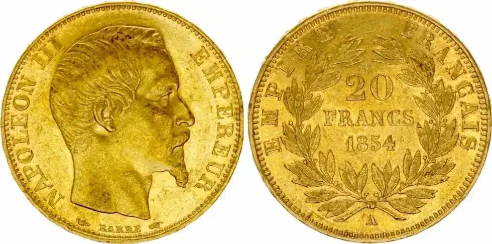 France 20 Francs Napoléon III Tête nue – 1854 A Paris Prix Promo