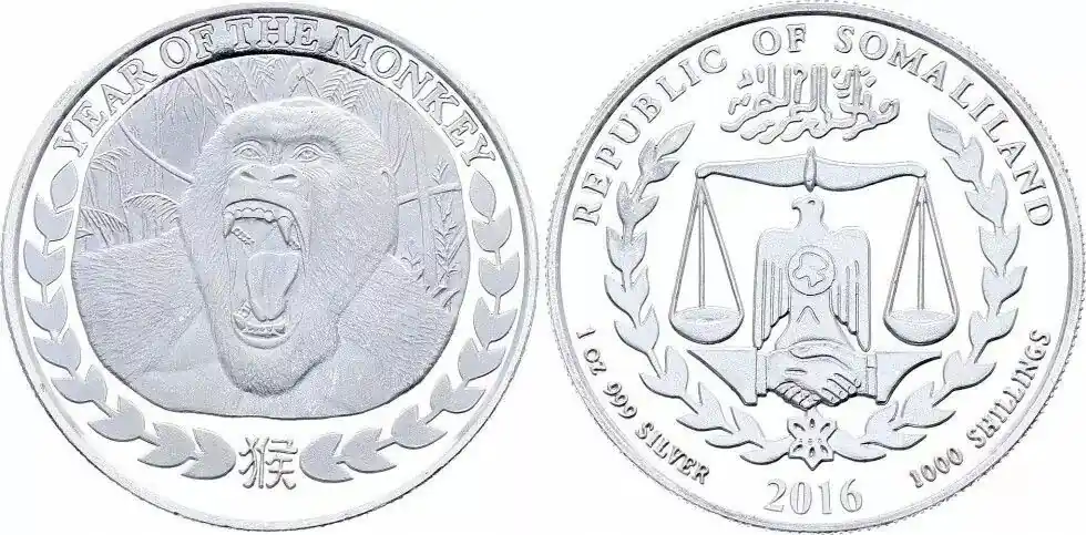 Somaliland 1000 Shillings Gorille – Once Argent 2016 Populaire