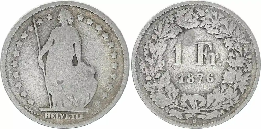 Suisse 1 Franc Helvetia – 1876 B Berne Populaire