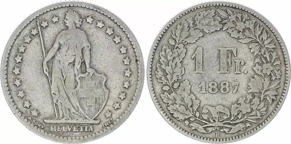 Suisse 1 Franc Helvetia – 1887 B Berne Achat Immédiat