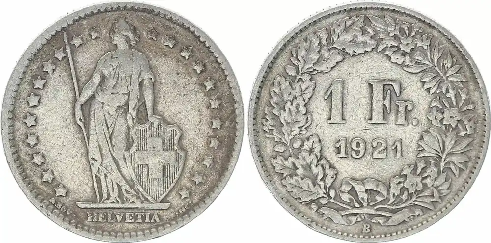Suisse 1 Franc Helvetia – 1921 B Berne Vente Flash
