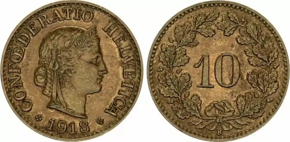 Suisse 10 Rappen Helvetia – 1918 B Meilleur Choix