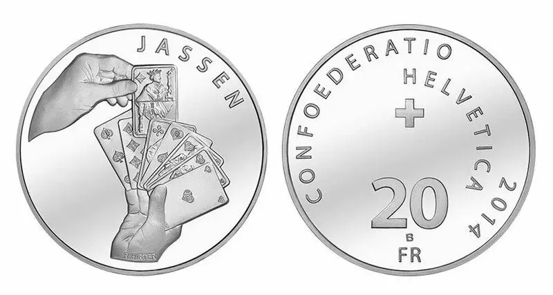 Suisse 20 Francs Jass, jeux de cartes – 2014 Argent En Vogue