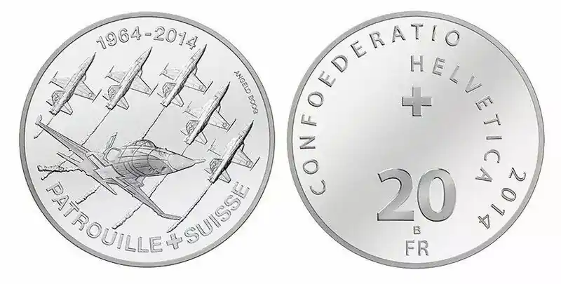 Suisse 20 Francs Patrouille aérienne Suisse – 2014 Argent Achat Immédiat