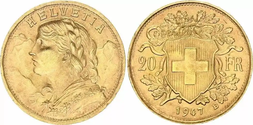 Suisse 20 Francs Vreneli 1947 – B Bon Plan