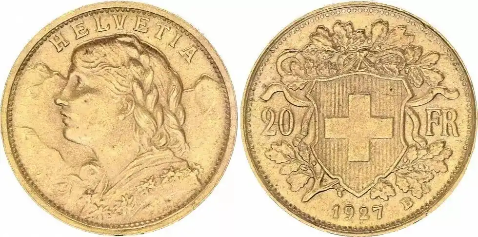Suisse 20 Francs Vreneli 1927 – B Usine Directe